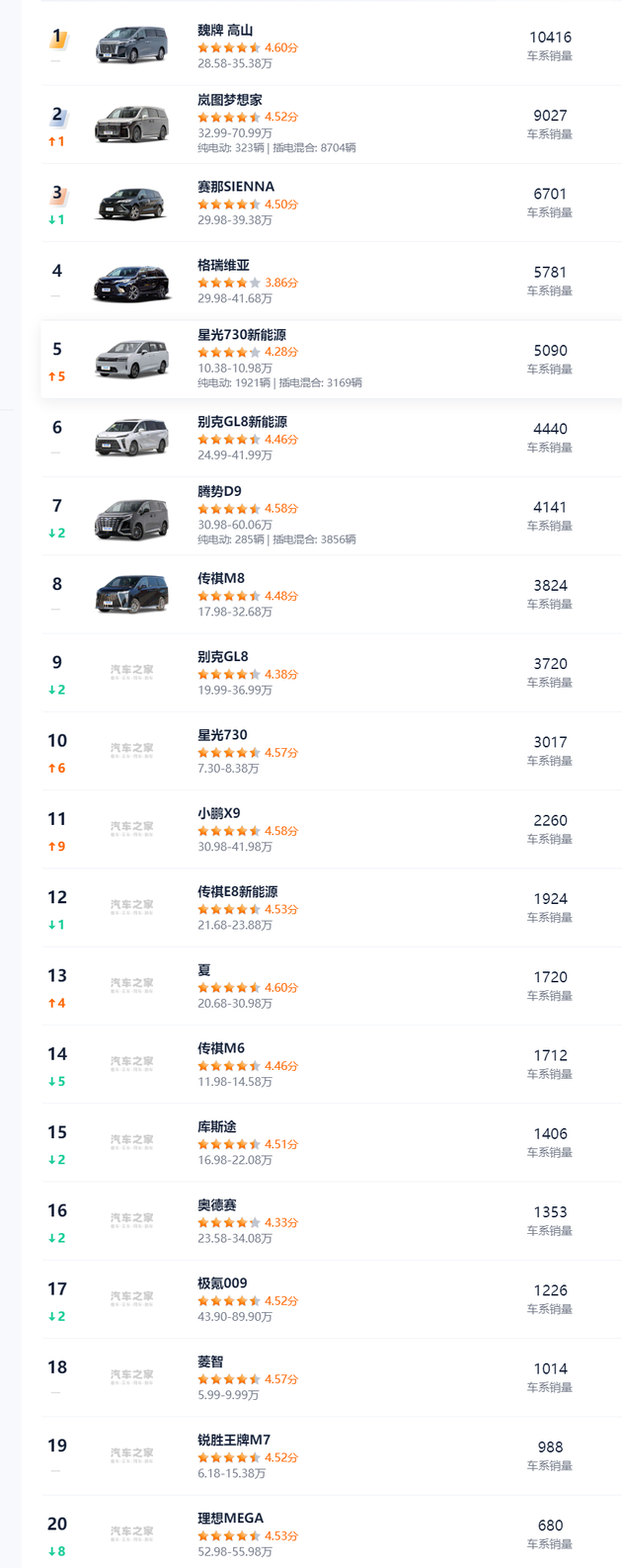 如今,MPV受到越来越多家庭的关注,因为它兼顾了轿车的舒适和SUV的大空间,并且普遍的6/7座设计,尤其受到二胎家庭的欢迎。再加上新能源的普及,让其在动力/油耗方面都有着相当出色的表现!看看11月份MPV销量排行榜,其中有你喜欢的车型吗?