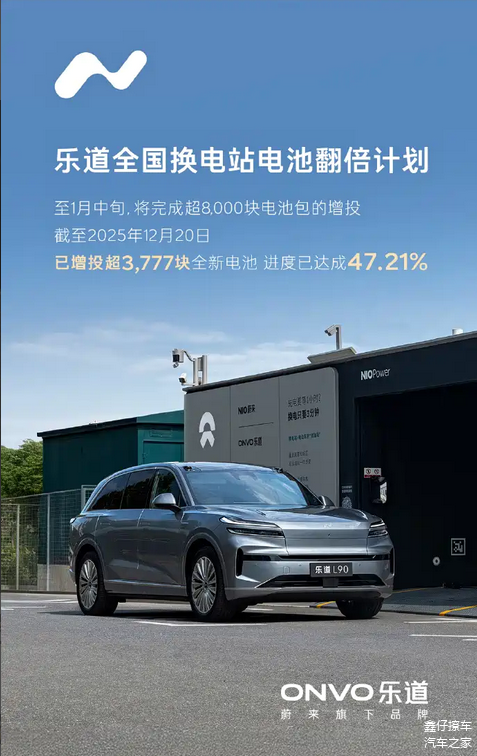 近日,蔚来乐道汽车对外宣布其电池翻倍计划已正式启动。截至12月20日,公司在全国换电网络中已投放超过3777块全新电池,完成整体计划的约47.21%。按照规划,到明年1月中旬,乐道将在全国范围内完成超过8000块电池的增投,实现电池数量翻倍。此次计划的推进标志着乐道在补能体系建设方面的加速,同时为用户提供更为稳定的能源保障。