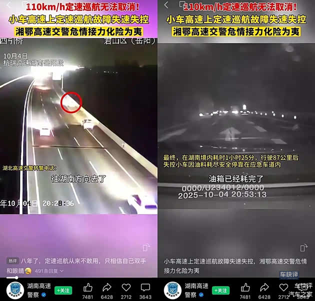 不要误会,这辆在高速上以115km/h时速连续行驶了将近500公里的车,并不是在参加什么比赛,也不是司机故意在秀车技,主要原因还是因为车辆的定速巡航出故障了。