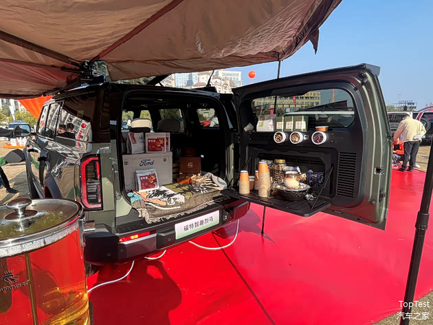 真正的差异化优势,还是在露营场景的针对性设计。首先是一键升顶,顶部全景天窗可抬高增加36厘米车内高度,关键是能智能感应风雨,10秒自动关闭,户外露营遇到变天不用手忙脚乱;其二是一键成床,不用搬行李,放倒座椅就是近2米的大床,长途自驾或者露营过夜都很实用,解决了户外休息的核心需求;第三是山野厨房,尾门自带能承重18公斤的桌板,配合6.6kW外放电功能,煮个火锅、烤个串都没问题。这三个功能精准戳中了当下露营的痛点。