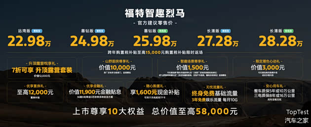 总的来说,福特智趣烈马没有走“堆料炫技”的路子,而是精准瞄准了“露营+越野+城市”的细分场景。22.98万的起售价、至高5.8万的权益,加上均衡的产品配置,让它在红海市场里有了差异化的竞争力。对福特来说,这台车不仅是中国新能源市场的战略产品,更是品牌向“全场景生活方式”转型的试金石。
