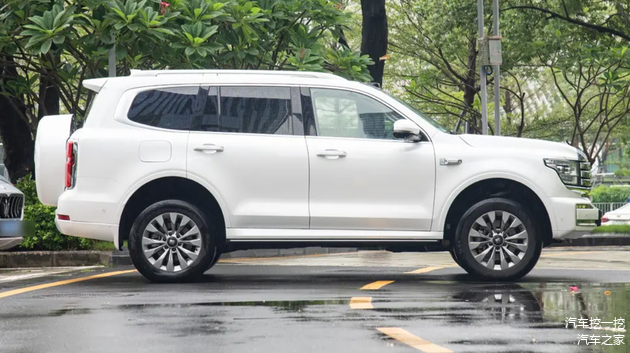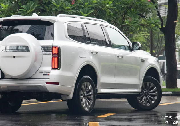 越野车该有配置都有,比如像小书包、侧开尾门、车顶行李架这些都是标配的,只是踏板需要自己安装。不过我觉得这类车比较适合安装固定踏板,比自动踏板更霸气。而且它的避震而也有调高,加上尺寸为5078毫米、1934毫米、1905毫米,轴距为2850毫米,因此侧面就显得很高,像机械门把手的保留,隐藏车窗的保留都是点睛之笔的设计。在A柱位置带有摄像头、在后视镜下方也有摄像头、尾灯组的造型也很硬派,我觉得有种老款普拉多的经典风格,十分讨好越野迷。