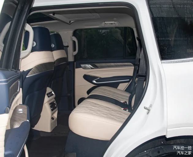 来到内饰,坦克500 Hi4-T的布局和用料都比普拉多高级多了。比如座椅采用nappa真皮包裹,搭配纹理缝线工艺,两侧包裹很强,中控台前排采用拉丝面板。双开门的扶手等细节设计都很高端。并且也保留有许多实体按键,而且中间石英表也能为内饰提升高级感。液晶仪表是12.3英寸,中控屏是15.6英寸,搭载的车机为Coffee OS并支持5G网络模块,从而响应速度更快,前排座椅标配通风加热,部分车型带按摩和腿托并支持多向电动调节,甚至座椅都可以纯平放倒,加上双层夹胶玻璃之后,不论是舒适度还是静谧性都很给力。