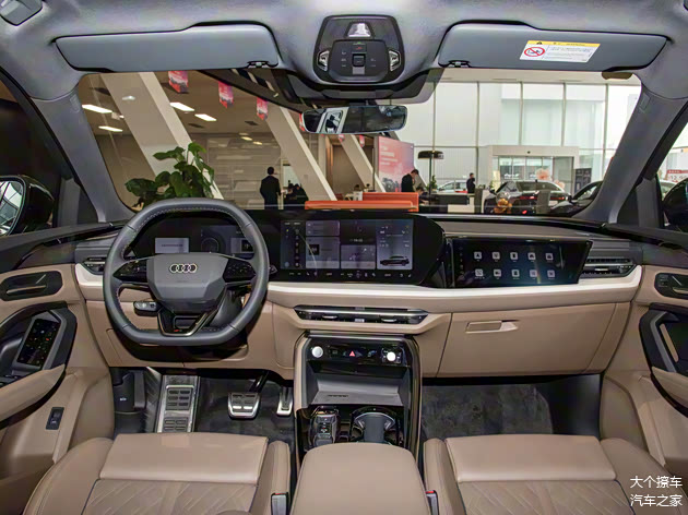车辆的内部装饰采纳了奥迪最新的设计理念,包括一个双平底方向盘,配备了11.9英寸的仪表板和14.5英寸的触摸屏,形成了OLED曲面屏。此外,车辆还配备了10.9英寸的副驾驶娱乐屏和13.1英寸的HUD抬头显示功能。换挡部分也被替换为全新的滑块设计,使得整体的科技感更加出众。