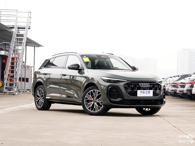 从外观上观察,全新的奥迪Q5L展现了创新的设计理念。首先,它的前脸部分设计了一个更加宽敞的六边形进气格栅,并在内部加入了点阵式的设计元素。下方有梯形进气口,而两侧则采用了导流槽的设计,使得整体造型显得更为动感十足。
