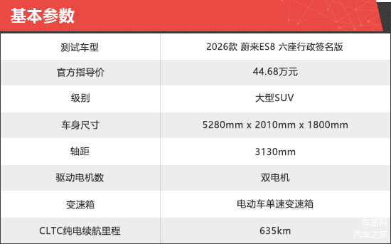 综合以上各项测试结果得出结论,2026款蔚来ES8在客观数据和主观感受方面的整体表现达到了专家评审团预期。在客观数据层面,车内噪声和振动抑制表现可圈可点,不过个别部位的车身工艺、整车漆膜厚度和喷涂均匀性依然存在提升空间。在主观感受层面,新增的前备厢和车内实体按键大大提升了日常使用的便利性,升级后的智能座舱和底盘悬架带来更出色的驾控体验。不过,外后视镜调节方式以及巡航系统跟车距离等还有待优化。综合来看,2026款蔚来ES8的商品性表现在测试过的同级别车型中处于中游水平。