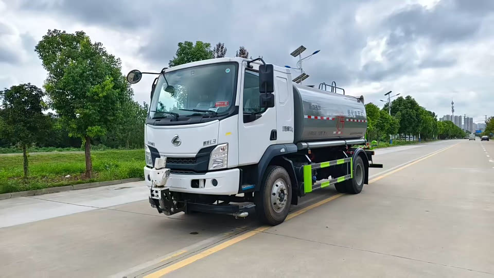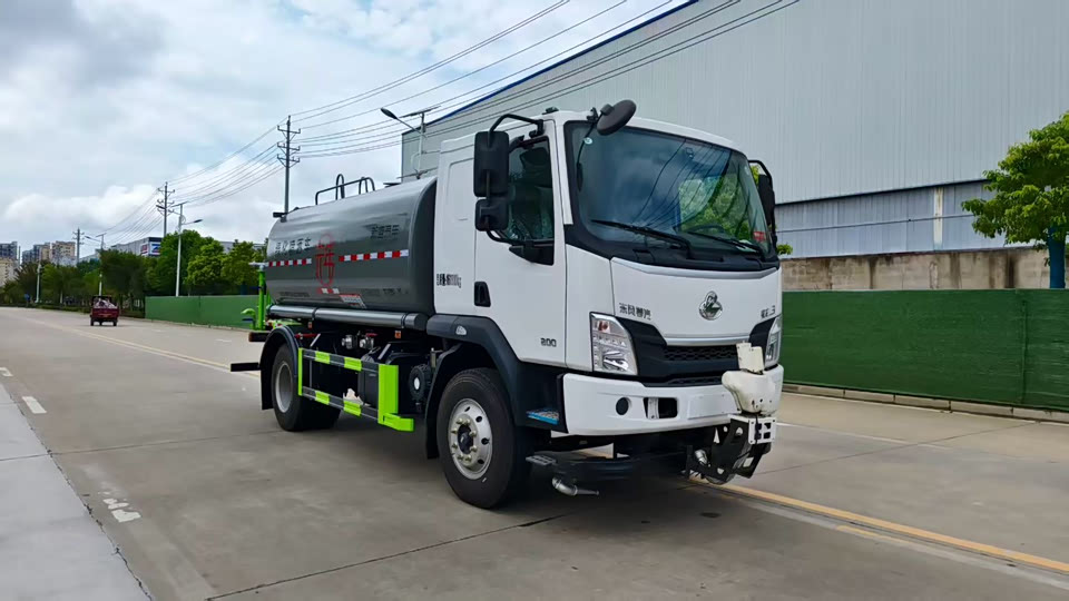 上装与洒水系统(高效作业) 罐体与材质 容积 12 方(公告 11.8 方),Q235 碳钢 4–6mm 厚,封头 8mm 加厚,防波板设计,液压自卸 + 气动尾门,排污快无残留。 可选不锈钢 / 铝合金材质,防腐蚀,适配长期使用。 水泵与喷洒 配杭州威龙 / 金龙 60–90 型自吸式洒水泵,垂吸程≥6m,扬程≥100m。 前冲覆盖 8 车道,后洒宽度 12m,后置 360° 旋转高炮射程≥38m,可调节直冲、大雨、小雨、雾状。