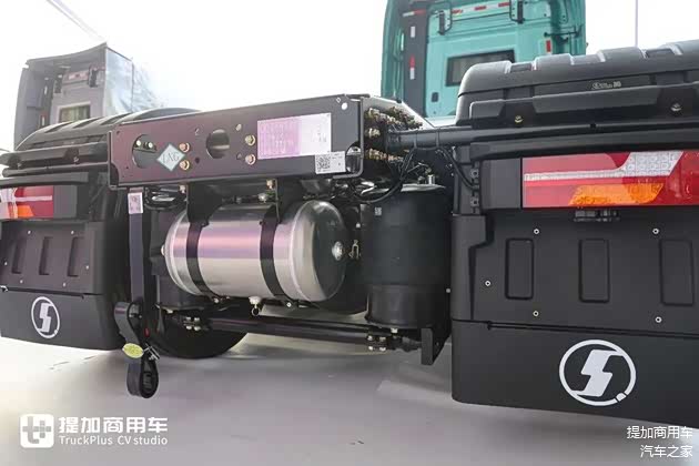 气车的气瓶分后置和侧置两种布局,在此要着重讲一下侧置的特点,其实做这个结构不难,但是想做到极致的话目前只有陕汽实现了。像X6000超凡旗舰版的排气和锂电池的位置都是进行了重新设计,然后让那个车辆底盘两侧各布置了一个750L的气瓶,总容量1500L,而很多车包括X6000之前的解决方案都是1250L,很明显续航长了。再者就是底盘重心下降,驾驶室有后移空间,然后很多拉绿通的卡友就可以做前探箱,以保证车挂总长不超18.1米,享受了气车的高经济性,又合规享受绿通免高速费的政策。