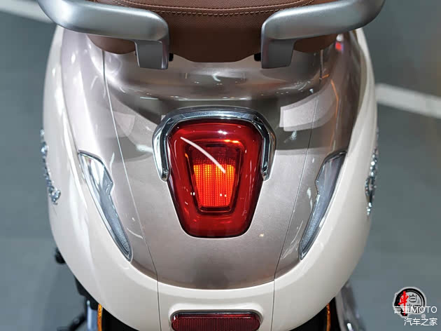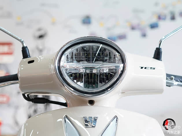 Lumi125的外观诠释了圆润、温和的“新复古”风格。车身线条饱满流畅,没有锋利的折角,整体轮廓小巧亲和。椭圆形的LED大灯是前脸的点睛之笔,搭配全镀铬包边和贯穿车头的V型镀铬饰条,恰到好处地复刻了经典韵味,又不显老气。车尾的红宝石造型尾灯与之呼应,精致感在线。同时提供多款配色可选,整体视觉观感清新耐看。