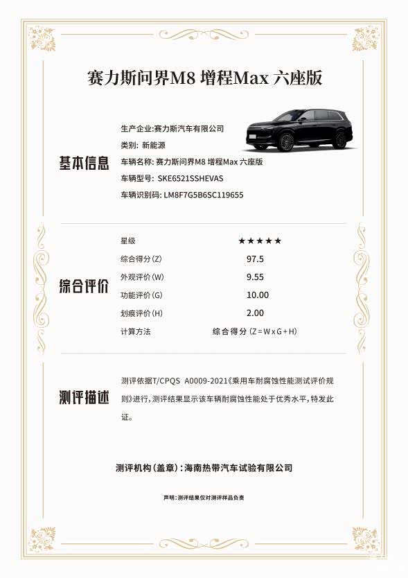 CA-CAP是在中国消费品质量安全促进会的指导下,由海南热带汽车试验有限公司牵头开展的一项面向行业的权威测评,自2022年至2025年已连续开展四届,累计认证25款车型,涉及22个汽车品牌。此次问界M8获奖,充分印证了其在复杂环境下卓越的耐腐蚀性能。