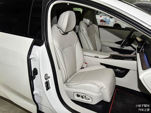 内饰方面,铂智7的内饰和大多数电车一样,都是采用了比较简约的设计风格,车机只保留两块屏幕,几乎找不到物理按键,不过在用料部分这台车却是非常用心,中控台配备了真木饰板,座椅也使用了NAPPA真皮材质,包括顶棚也是麂皮材料,车内大面积都是软性材质包裹不仅触感细腻,视觉效果也很显档次。此外在舒适配置方面,这台车的前后排座椅都支持加热、通风和按摩功能,还有配备了23个扬声器的雅马哈音响系统以及副驾零重力座椅,并且后排也带有无线充电功能,这在同级别当中可是非常少见的。