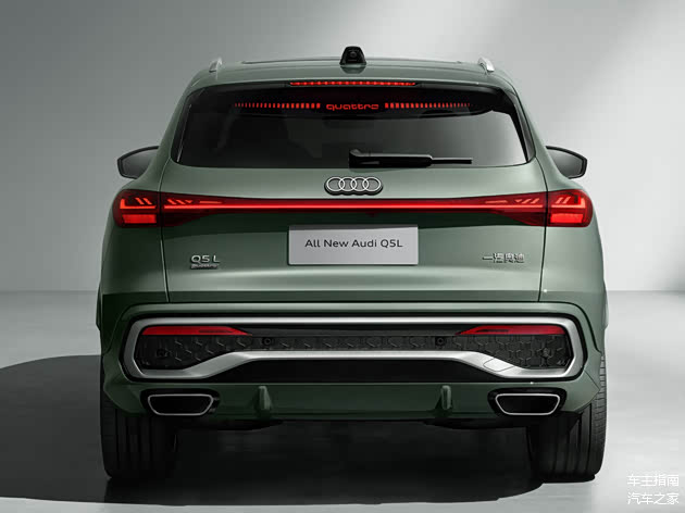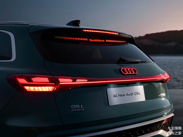 尾部变化幅度更大,换装全新样式的贯穿式尾灯,下包围尺寸进一步增大,采用了蜂窝状布局,与前格栅设计相呼应,车辆还保留了双边矩形排气口。总的来说,新车造型变得更有科技感,在视觉观感上更为年轻激进,比现款奥迪Q5L更能吸引到年轻用户群体的关注。