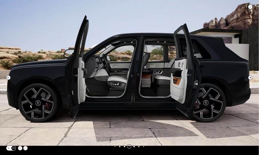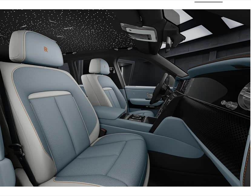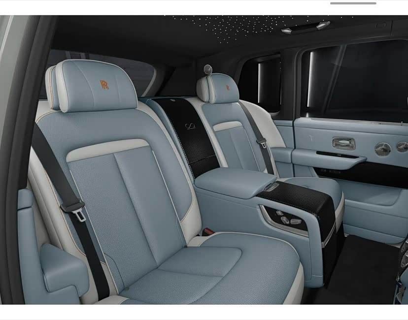 劳斯莱斯 库里南BB 外观:钻石黑 内饰:优雅白-黑色-橘 选配:23英寸Black Badge轮毂 双腰线-优雅白 后排独立座椅 前后排座椅通风 流星顶 定制音响 碳纤维延展-空调出风口。