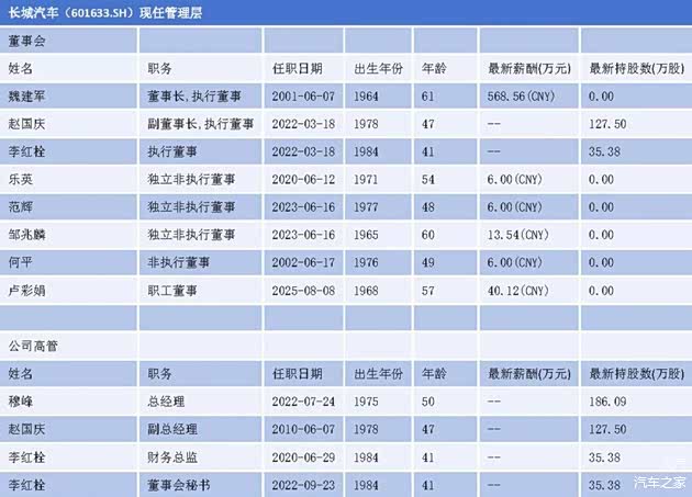 11月底,北京汽车发布重磅人事公告,核心管理层迎来集中“换血”:原总裁宋玮及三位非执行董事同步离任,陈更接任总裁,顾鑫、朱雁分别补位非执行董事与执行董事,以高效的人员迭代保障战略落地;长城集团则聚焦品牌端优化,魏牌现任CEO冯复之退出核心决策层,哈弗品牌总经理赵永坡接任,年内哈弗、魏牌、坦克、欧拉四大品牌均完成管理层迭代,实现品牌战略与管理团队的精准匹配。