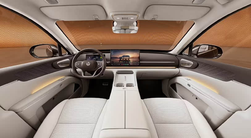 奢华用料:座舱大面积采用无铬鞣半苯胺头层真皮、天鹅绒顶棚,并运用珍珠打孔、V字绗缝等源自百年奢品工艺,质感向百万豪车看齐。