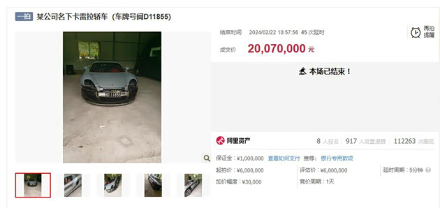 同一款车,不同命运,2024年2月22日,一辆厦门牌照的卡雷拉GT被拍卖,当时评估价和起拍价都是600万元,保证金为100万元,加价幅度为3万,当时8人报名,被围观次数超过10万,经过61次竞拍,成功拍卖2007万元,再来看看红色保时捷卡雷拉GT,显得冷清不少。其实不是没人要,只是价格没有谈拢而已,至于为什么没有谈拢,答案:买卖不一心。