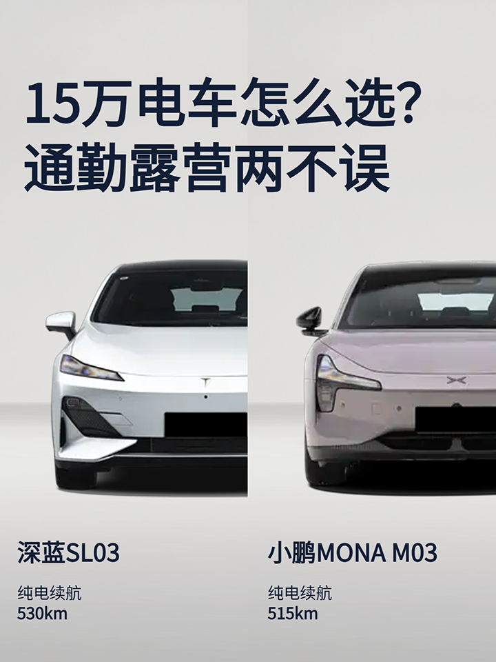 深蓝SL03后排能跷二郎腿,掀背尾门塞自行车无压力🚴;小鹏MONA M03后排头部局促,但后备箱621L能装下两个行李箱+露营装备。家庭选深蓝,单身贵族选小鹏。