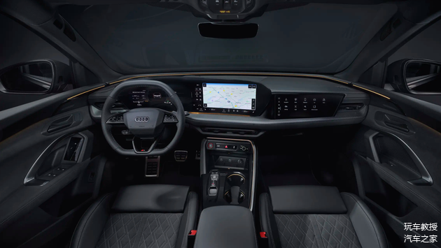 来到内饰,全新奥迪Q5L延续了定位更高的Q6L e-tron的造型,即主驾偏向驾驶员的11.9英寸液晶仪表搭配14.5英寸曲面中控屏,并且还有全系标配的副驾娱乐屏,科技感相当到位。此外,新车还会配备13.1英寸HUD投屏,支持“四屏联动”,不过从当前配置表来看,只有顶配会给到。
