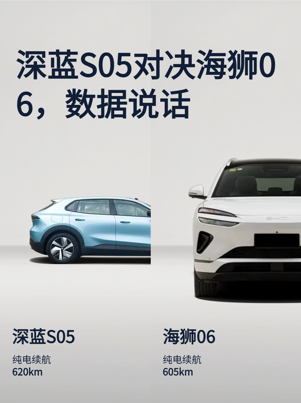 1️⃣ 续航实测:深蓝S05 620km(市区电耗12.7kWh/百公里)vs 海狮06 605km(电耗14.1kWh),深蓝更省电!