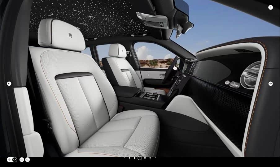 劳斯莱斯 库里南BB 外观:钻石黑 内饰:优雅白-黑色-橘 选配:23英寸Black Badge轮毂 双腰线-优雅白 后排独立座椅 前后排座椅通风 流星顶 定制音响 碳纤维延展-空调出风口。