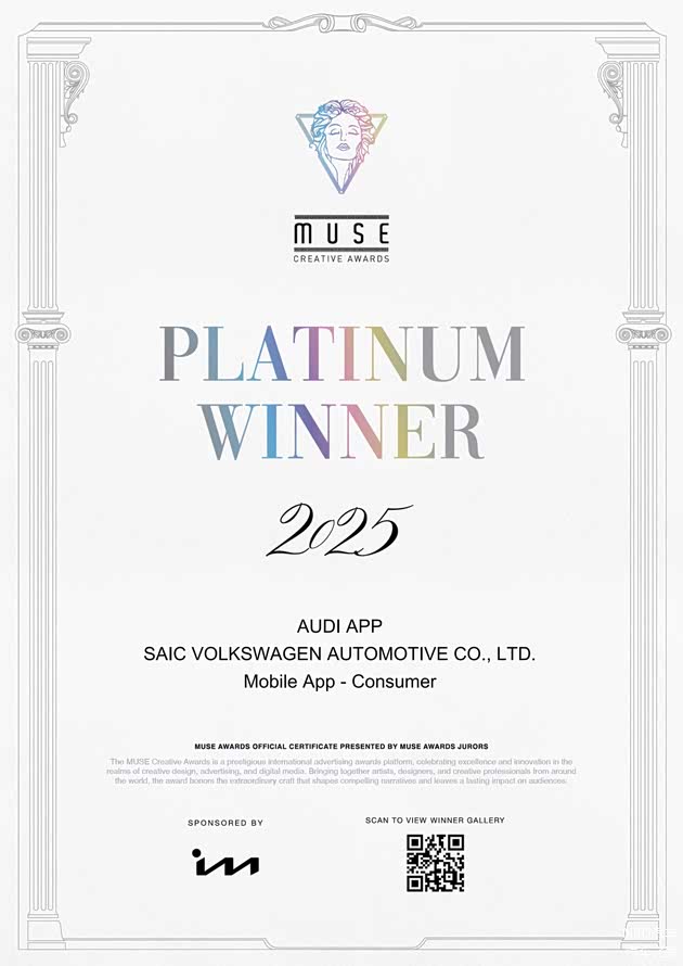 近日,上汽奥迪 AUDI APP 接连在两项国际设计大奖中斩获最高荣誉,一举摘得MUSE创意设计奖(MUSE Creative Awards)铂金奖与美国国际设计大奖(International Design Awards, IDA)金奖。此次连获国际双奖,不仅体现了全球设计界对 AUDI APP 在用户体验与美学创新方面的高度认可,也彰显了上汽奥迪在数智生态领域的领先实力。