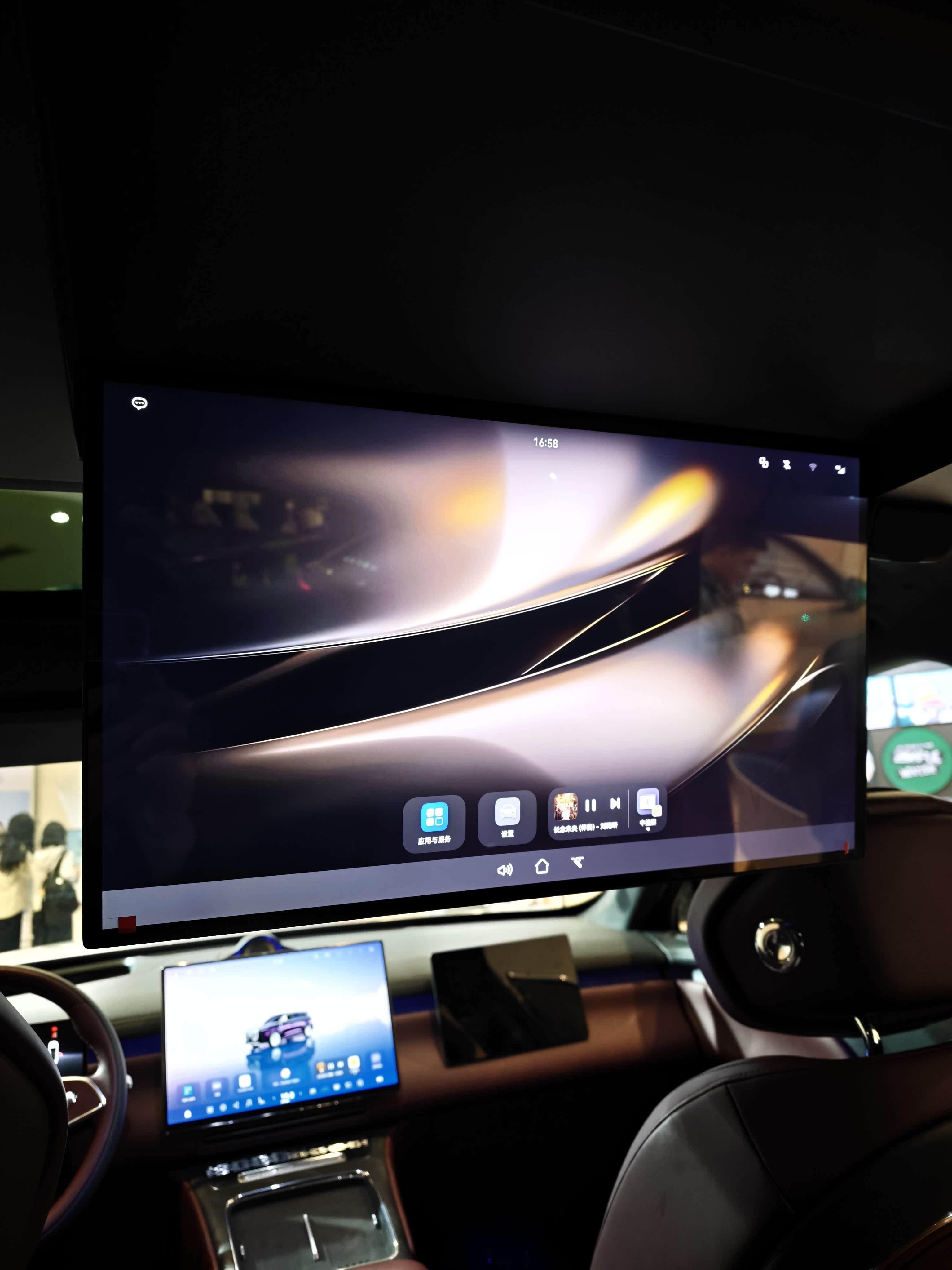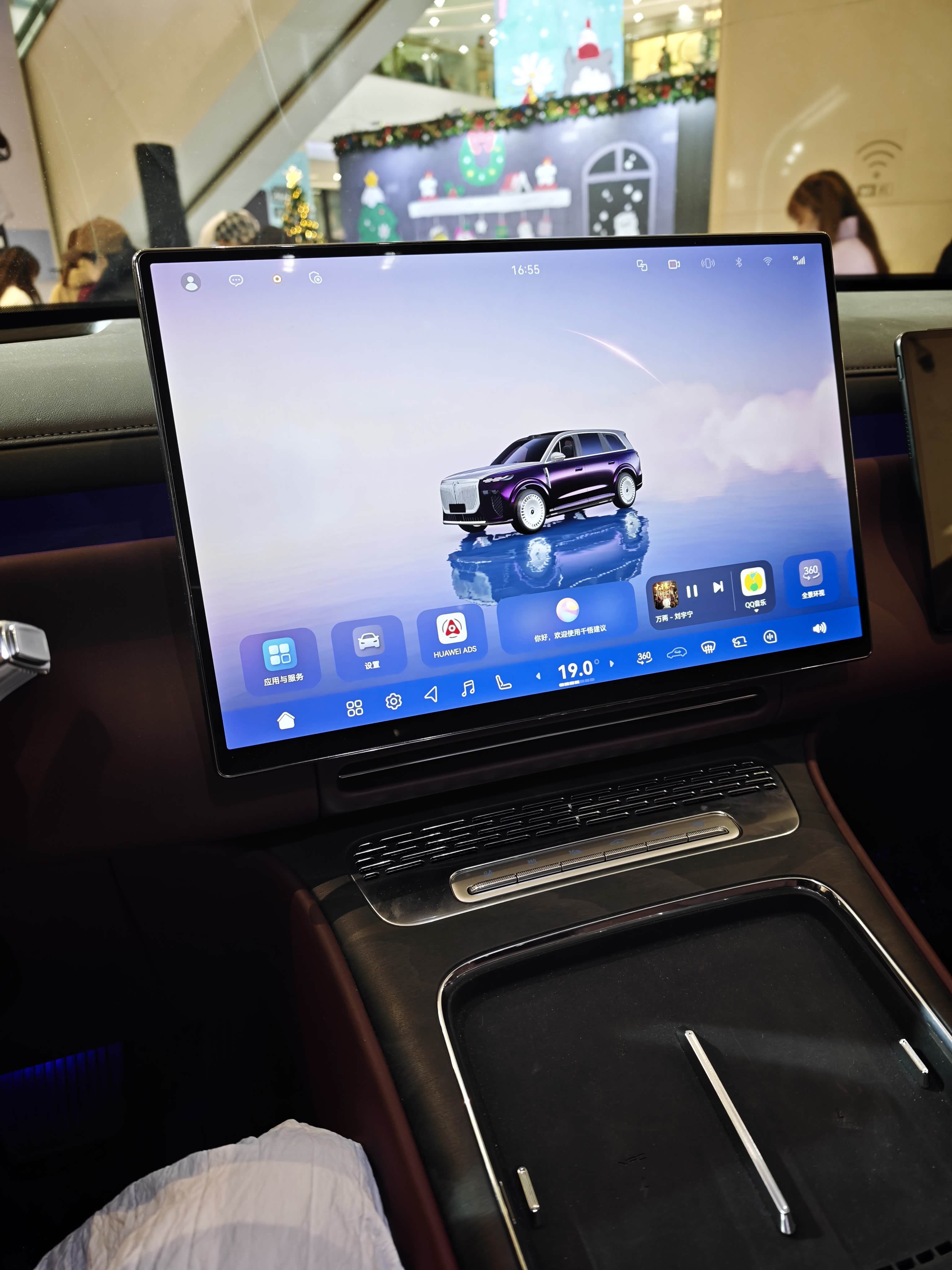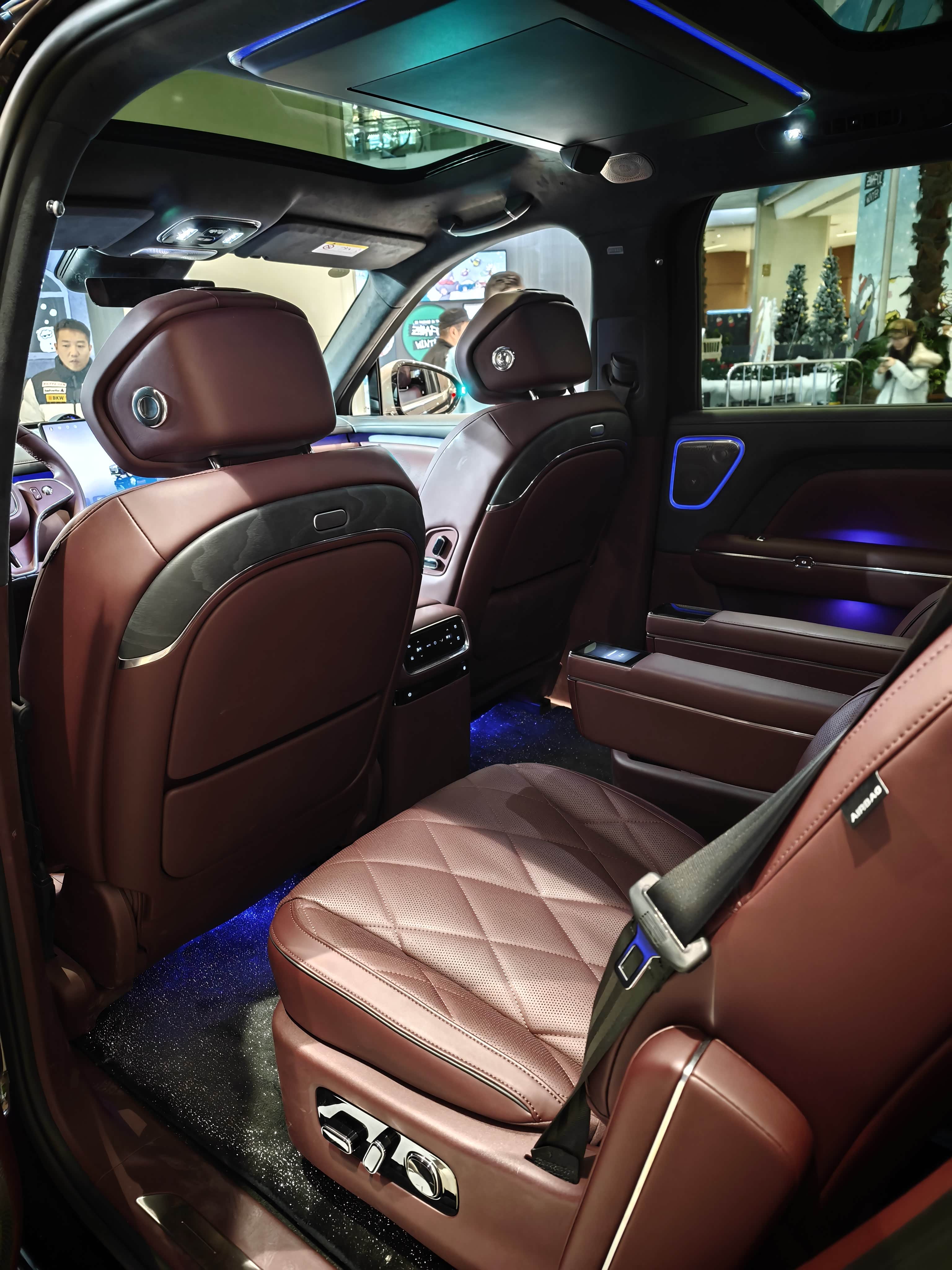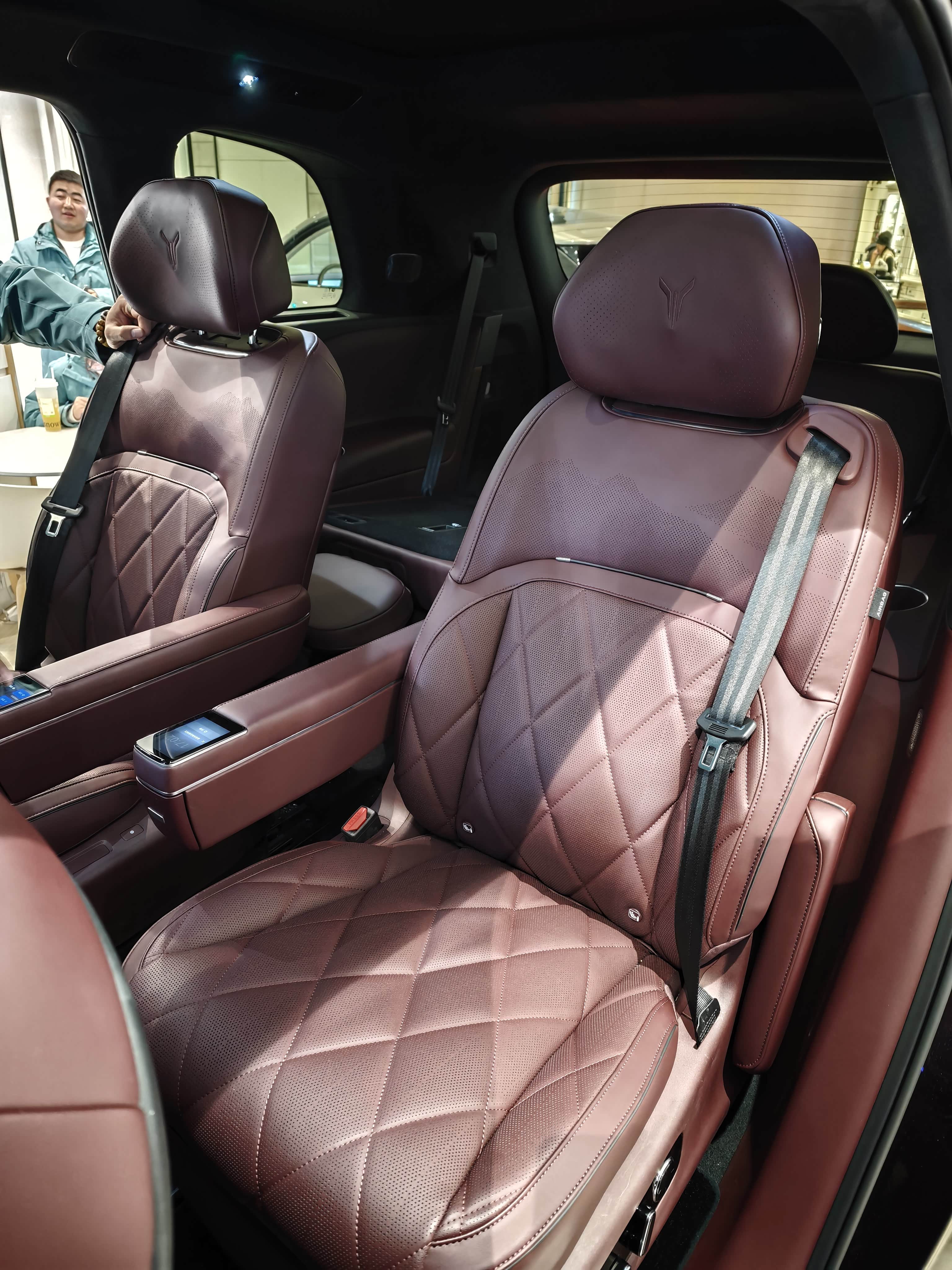 逛商场看到岚图泰山,最近经常做云评,还没看过实车,今天是见识了,外观很有气势,镀铬大格栅,电镀大饼轮毂。 六座布局,后排独立座椅,基础的功能都有配置,扶手屏可以关闭车门,也可以电动调节扶手角度,很实用。 后排的娱乐屏有21.4英寸,这彩电尺寸越卷越大,实在没必要,座椅的配色是我喜欢的,很有质感。