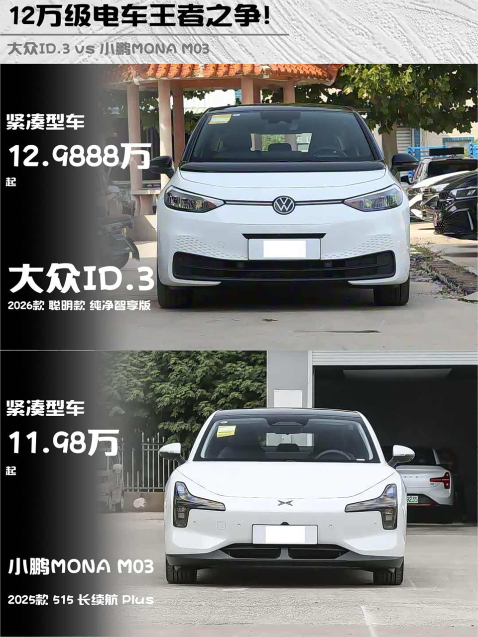 最近在纠结大众ID.3 2026款聪明款纯净智享版和小鹏MONA M03 2025款515长续航Plus这两款车?作为深度体验过两台车的车主,掏心窝子分享真实对比感受!🔥