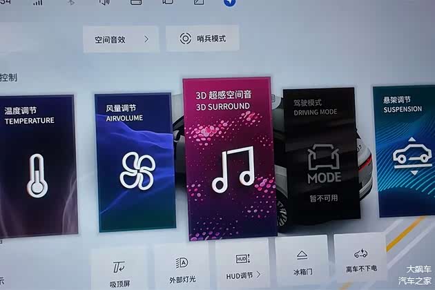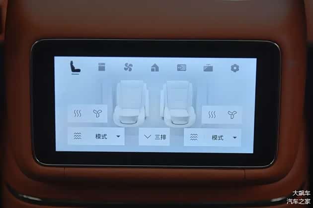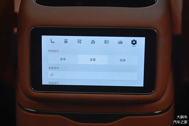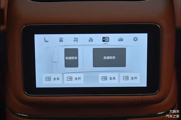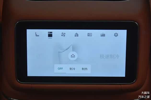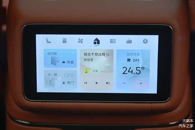 后排有一个小块液晶屏,可以调节座椅、空调、冰箱等功能。