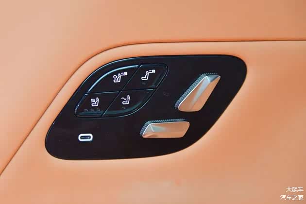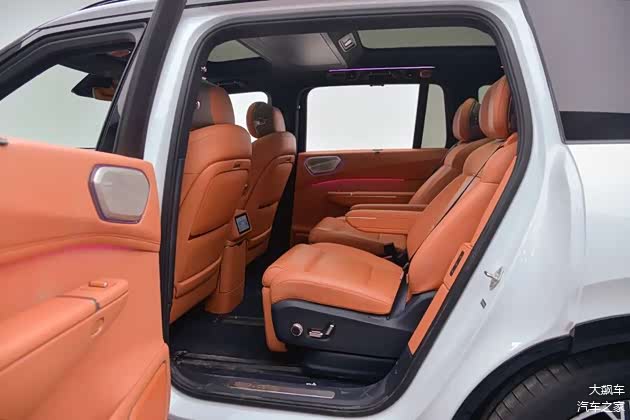 第二排座椅是两个独立座椅,类似于MPV,支持通风加热及按摩功能。