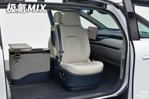 旋转座椅的设计和之前我们拆过的极氪MIX很相似,非常适合外出野营小聚,侧坐对于腿脚不便的乘客来说,上下车也更方便一些,有点福祉车的意思。