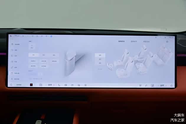 这辆车标配了一块30英寸中控液晶屏,横跨了中控屏和副驾娱乐屏两个位置。