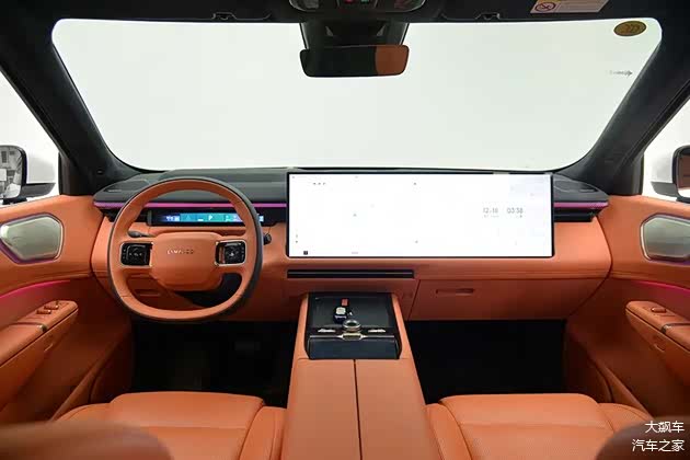 内饰简洁,屏幕布局有点“理想”的风格,大面积采用软性皮质包裹,顶棚都是翻毛皮材质。