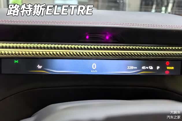 液晶仪表盘虽然有12.66英寸,但其实是一个小窄条。好处是方向盘不遮挡,但字体、图标较小,不便于观察。这个设计与路特斯的电车,如出一辙。