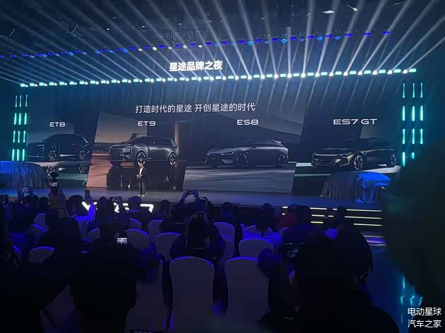 产品方面,星途正式发布面向未来的 ES 系列(性能)与 ET 系列(豪华) 两大产品矩阵,并在现场展示了四款新车,分别是性能轿跑ES7 GT、猎装轿跑ES8、ET8以及大六座SUV ET9。