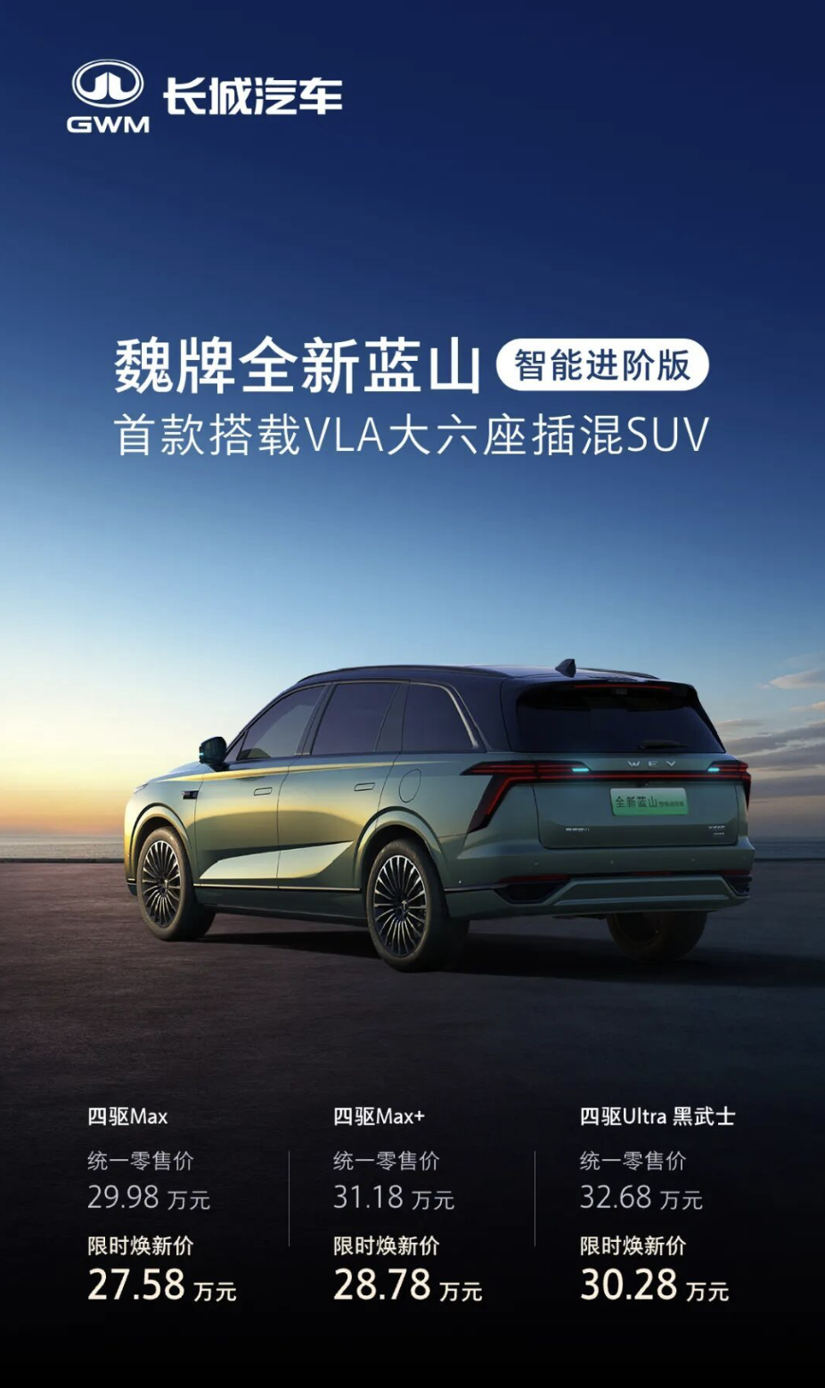 为爱智能进阶,全新魏牌蓝山27.58万起售!