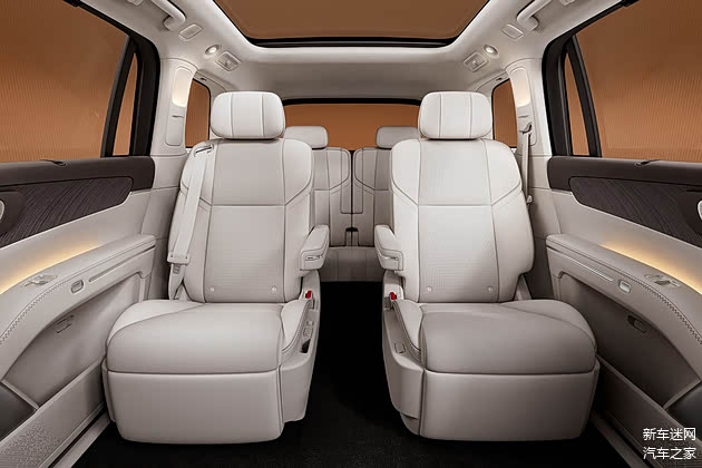 零跑D19的内饰采用了简约风格的仪表板,配备了10.25英寸的仪表盘和17.3英寸中控多媒体屏,两块屏幕独立布局。双层中央通道的上层有无线充电板和两个未遮盖的杯架。通道末端还有一个6英寸的显示屏,以及一个带有加热和冷却功能、容量为8.1升的可伸缩隔间,支持语音控制。前排座椅靠背上还有折叠桌,后排乘客也有自己的21.4英寸平板电脑,安装在车顶上。
