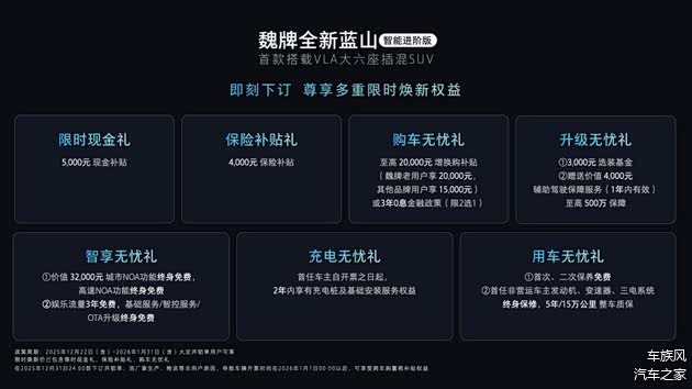 首款搭载VLA大六座插混SUV,魏牌全新蓝山智能进阶版上市 限时焕新27.58万元起