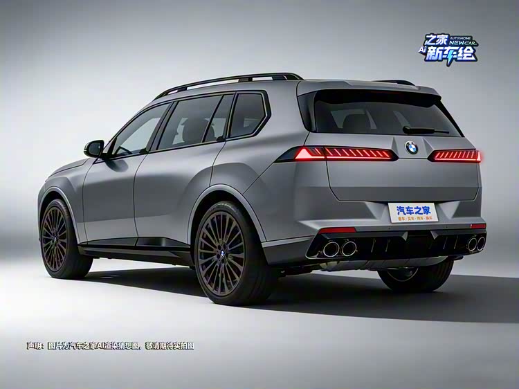 尾部效果图采用了类似全新iX3的灯组思路,使灯带在横向拉伸的同时,通过内部结构分区提升层次感。这种设计并不依赖复杂线条,而是通过灯光逻辑传递车辆属性。对于未来可能推出的iX7纯电版本而言,这样的尾部设计具备较高的通用性,可以在不同动力形式之间实现统一视觉语言。