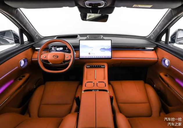 来到内饰,传祺向往s7依旧围绕主流车的风格,布局上还是很简约,但是它内部的氛围灯特别豪华。车门扶手不仅有氛围灯,就连扬声器也内置氛围灯,并配备22扬声器和杜比全景声音效,还有中置音箱,配合多层隔音后,车门一关,音乐一放,堪比移动音乐厅。而且皮革包裹覆盖百分88以上,包括座椅填充和车门扶手填充都很厚实。它配一个27英寸的抬头显示,12000尼特亮度的加持下,白天显示也很清晰。同时车机采用8295的芯片,流畅度非常高,并且手机互联支持CarPlay、HiCar、CarLink,尺寸也来到15.6英寸。在自主品牌里,车机的丰富性也是没问题,语音识别和控制都很ok的。同时车顶带有激光雷达,也是支持智驾功能,并且是广汽传祺自研的系统,还能支持无图智驾功能。