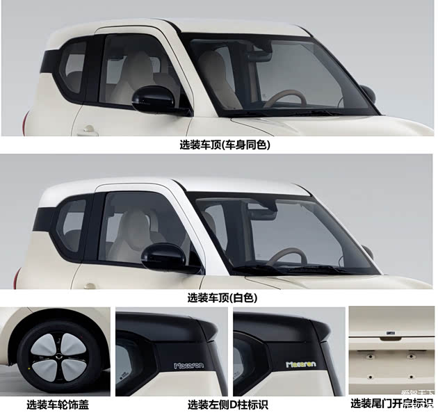 车身侧面,新款宏光MINIEV的变化并不大,基本还是2025款的模样,提供双色车身、传统门把手、花瓣式轮毂,以及D柱标识的选装。车尾部分,新款宏光MINIEV同样也换上了圆形尾灯,车标则置放在镀铬饰条上方,整体风格与前脸高度统一。