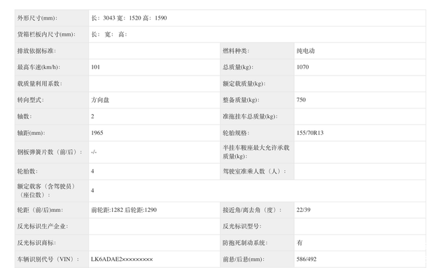 车身尺寸,新款宏光MINIEV提供两门版和四门版两种车型。其中,两门版长宽高分别为3043/1520/1590mm,轴距为1965mm,除了车宽,其余数据均比现款车型小了一号;四门版长宽高分别为3268/1520/1575mm,轴距为2190mm,相比于现款车型,新款的车长、宽度分别增加了12mm和10mm,高度缩减了3mm,轴距不变。