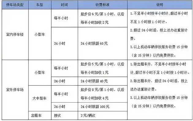 计费规则:与室内停车场相同,不足半小时按半小时计费,超过半小时不足1小时按1小时计费,超过24小时后重新计费。