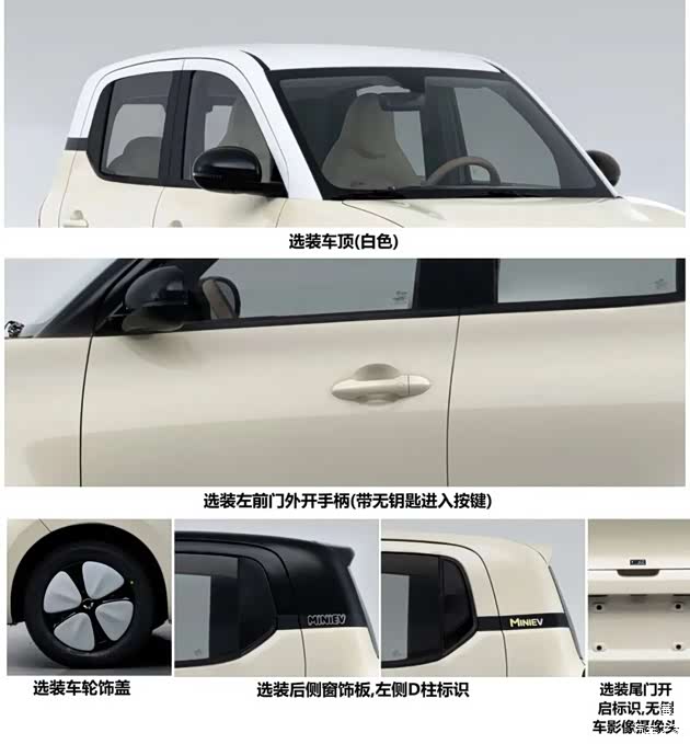 从申报图来看,新款五菱宏光MINIEV依然采用了圆润可爱车身线条,只不过这个前格栅和圆形大灯与糯玉米撞脸了,侧面提供双拼配色可选,尾部也延续了前脸的贯穿格栅+圆形大灯的设计,并继续提供四门和双门版车型,其长宽高分别为3268(3043)/1520/1575(1590)mm,轴距为2190(1965)mm。动力层面,新车继续搭载最大功率30千瓦的电机,配备磷酸铁锂电池组,考虑到这个级别的车型对成本的控制更加严格,三电方面没有大变化也在意料之中,可靠性和经济性让它依旧具备较强市场竞争力。