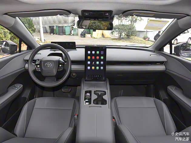 进入车内,全新bZ3的内饰采用简约科技的设计风格,与传统丰田车型差异明显。中控台布局简洁,核心区域由12.8英寸竖置中控屏主导,界面显示逻辑清晰,上方主要显示导航信息,下方固定为空调控制区域,内置酷我音乐、喜马拉雅、最美天气等常用APP,支持车联网、OTA升级和智能语音控制,语音识别率高,空间表现方面,2880mm的长轴距带来了充裕的驾乘空间,前后排腿部伸展空间充足,座椅采用仿皮材质,柔软度出色,后排座椅如同沙发般舒适,不过前后排座椅对身体的支撑性一般,长途乘坐可能会有疲劳感。值得一提的是,前排座椅支持向后放平,与后排座椅连通后可形成小型床位,为用户提供了临时休息的空间,实用性不错。