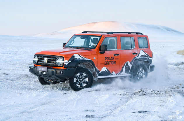 坦克300极地版采用了经典的橙色车身,配备了专属车身拉花与特殊LOGO,而之所以选择橙色为主色调,是因为该颜色是国际救援的安全色。此外新车还针对极寒天气进行了针对性的配置升级,比如支持远程控制的前风挡开启加热功能以及雨刮喷嘴加热功能,配备原厂AT全地形轮胎(265/65 R17)以及9500磅无线遥控绞盘,能适应多种复杂场景以及方便自救,同时还拥有2.5吨牵引资质。动力上,新车提供2.4T柴油与2.0T汽油双版本,前者发动机最大功率186马力,峰值扭矩为490牛·米;汽油版最大功率为227马力,峰值扭矩为387牛·米,配备前后桥电控差速锁及拥有十种驾驶模式的MTS全地形系统。