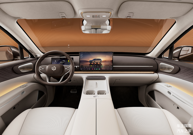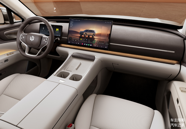 再来看看内饰,零跑D19并没有跟风采用双联屏设计,而是沿用了零跑C11的中控台布局风格,车内配备了10.25英寸悬浮式仪表盘、17.3英寸悬浮式中控屏,空调出风口采用隐藏式布局,中控台面板设计相对圆润柔和,中央功能区域配备有横向布局的水杯架,预留了两个手机无线充电面板,车辆将搭载60英寸AR-HUD抬头显示系统,换挡机构采用怀挡布局。