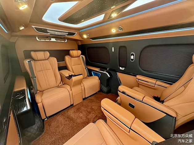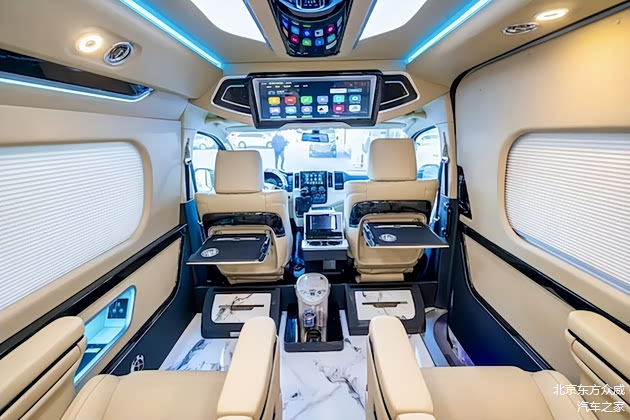 7座商务版是接待首选,全隔断设计搭配24寸升降吸顶电视,打造私密会谈空间;半隔断布局则兼顾互动与独立,灵活适配不同场景。全车隔音隔热处理+航空铝地板,让静谧性与质感双在线,中排旋转航空座椅可与后排沙发床形成对坐模式,小桌板一放,即刻变身移动会议室,尽显高端接待格调。