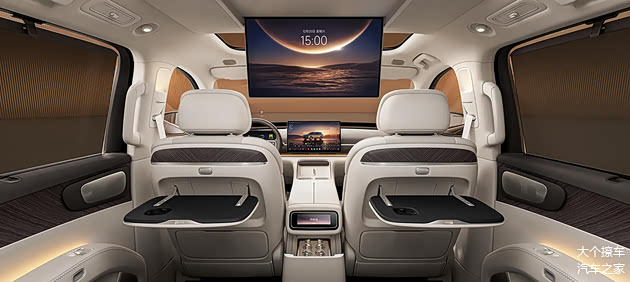 后排顶棚将推出可折叠吸顶大屏并配有双小桌板和前排中央扶手背面冷暖冰箱等冰箱彩电大沙发。
