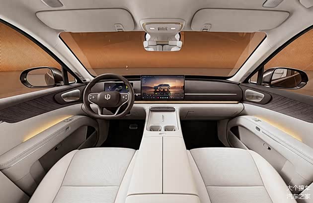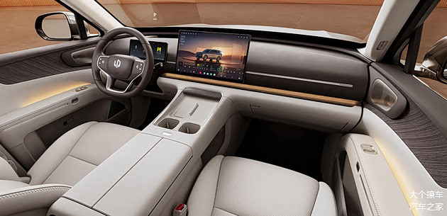 副中控台采用立体式设计,下方有更大储物格并配备香氛系统。上部有双杯架和手机无线充电板,正面有木纹饰板。车门内饰板上表面采用大面积木纹装饰、环绕式氛围灯档次感很好,此外B柱和C柱内饰板上还采用壁灯式氛围灯装饰。