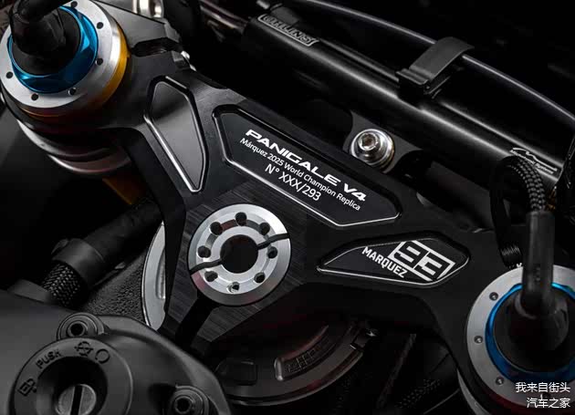 基于Panigale V4 S升级打造而来,这台限量版车型最主要的亮点为马克·马奎斯(Marc Márquez)亲笔签名的油箱盖、铝制三角夹(龙头)标注单车编号与名称、专属MM93钥匙与仪表开机动画、官方认证证书与特别包装木箱套件,顶级情绪价值!